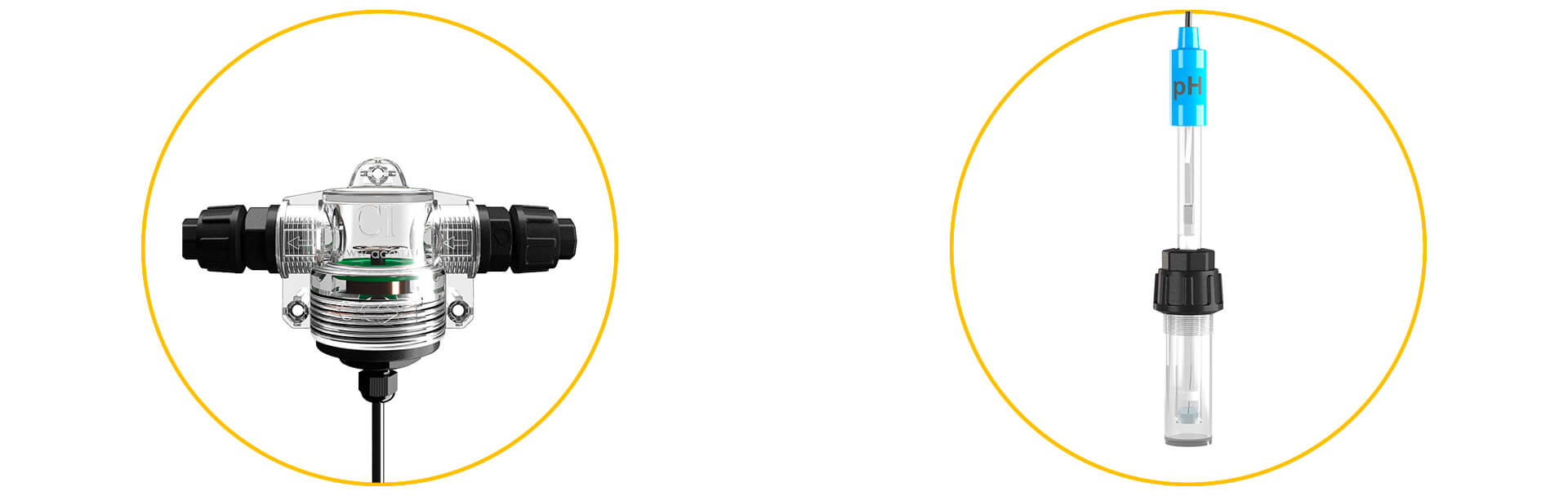 Контроль состояния датчиков pH и Cl. Станция по специальному алгоритму каждый цикл дозирования анализирует показания с датчиков-электродов и в случае отсутствия отклика на дозирование отправляет уведомление о необходимости проверки состояния датчиков и последующей их калибровки. Автоматическая чистка амперометрического датчика свободного хлора. Подавая напряжение на датчик-электрод, станция в автоматическом режиме производит очистку медного основания от окислений. Данная функция позволяет значительно продлить срок службы датчика и свести к минимум необходимость его обслуживания.